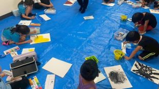 8月24日、岩田自治会館で絵を描きました。