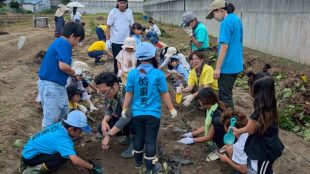 10月12日、深北緑地の南にある畑で体験のお友だちを迎えて芋ほりしました。