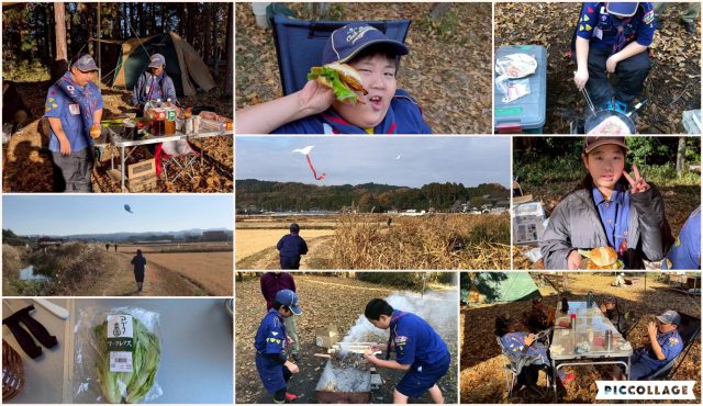 延びのびになっていたくまキャンプ。やっと全員そろったので、寒い中でしたが美旗野営場でキャンプをしました。テントを張って、火を起こすと少しあたたかくなってきました。野営場には秋の実りがまだたくさん残っていたので、竹で柿を採りました。このキャンプでやりたいことや、ごはんのメニューはみんなで考えたものです。その後は凧づくり。竹ひごとビニールを使って思い思いの凧を作りました。夕食はBBQとおでん。みんなで食べると美味しいね!ご飯も飯盒で美味しく炊けましたよ!