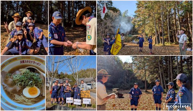 楽しかったくまキャンプもいよいよ終わりです。くまの修了章を隊長から渡され、ボーイ隊上進に一歩近づいた誇らしい顔のくまスカウトたち。帰りにはお待ちかねの「ラーメン」を食べて、電車に乗りました。